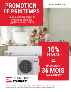 Découvrez nos promotions exclusives chez Confort Expert. Contactez-nous pour obtenir plus de détails sur les offres. Notre équipe vous conseillera sur les produits et offres les plus adaptés à votre besoin.